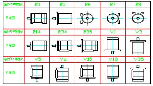 YBX4防爆電機(jī)的安裝方式符合GB997《電機(jī)結(jié)構(gòu)及安裝型式代號(hào)》及IEC34-7 的規(guī)定。本系列電動(dòng)機(jī)有以下5 種基本結(jié)構(gòu)型式:B3—機(jī)座帶底腳、端蓋無凸緣;B5—機(jī)座不帶底腳、端蓋有凸緣;B35—機(jī)座帶底腳、端蓋有凸緣;B14—機(jī)座不帶底腳、端蓋有小凸緣;B34—機(jī)座帶底腳、端蓋有小凸緣。本系列電動(dòng)機(jī)在上述5 種基本結(jié)構(gòu)上,可派生15 種常用結(jié)構(gòu)及安裝型式見下表: