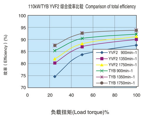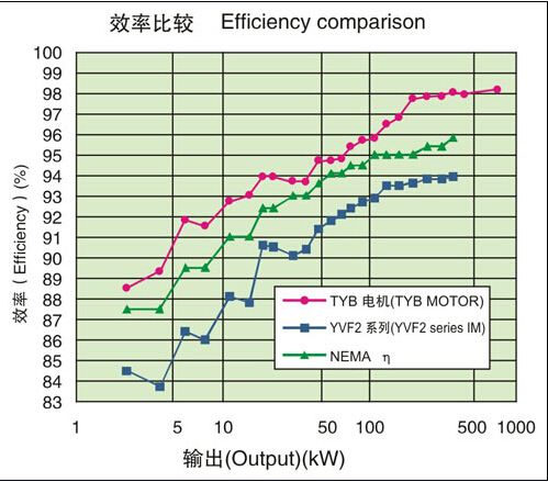 效率比高效電機NEMA標(biāo)準(zhǔn)值約提高3%左右,比本公司YVF2系列變頻器專用IM約提高5%左右。