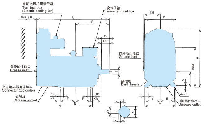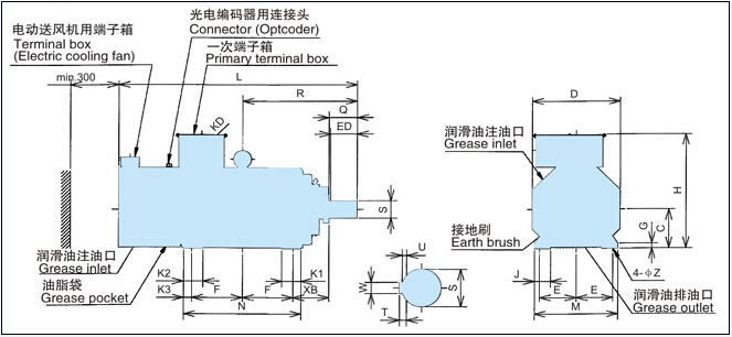 注3) 375kW及450kW基底速度1500 min-1的電機轉(zhuǎn)速范圍為1800~1500 min-1。而且,450kW基底速度1200 min-1的電機轉(zhuǎn)速范圍為1500-1200 min-1(★標(biāo)記)。